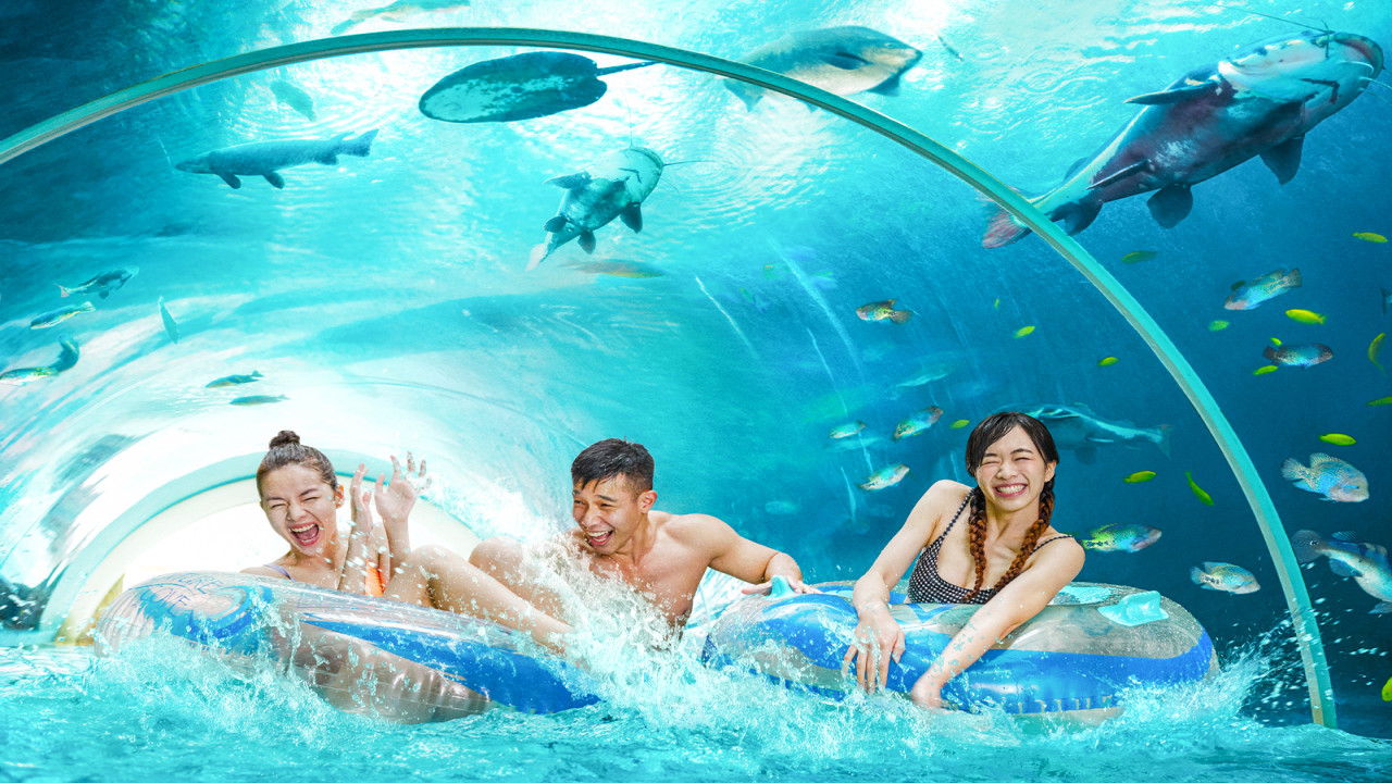 Adventure Cove Waterpark is a place where you can have fun in the water. Ride the Dueling Racer, Pipeline Plunge, and the exciting Riptide Rocket, which is Southeast Asia's first hydro-magnetic coaster. You can float through 14 themed areas on the Adventure River or snorkel with 20,000 colorful tropical fish at Rainbow Reef to see the beauty of the underwater world. At Ray Bay, you can see interesting marine life, enjoy attractions that are good for families, and have a great day by eating at Bay Restaurant and shopping at Reef n' Wave Wear. Adventure Cove Waterpark is a great place for families, friends, and people who love adventure. You won't want to miss it!
